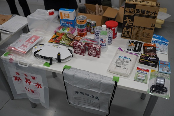 その他、備蓄リスト参考資料、災害対策グッズの展示物もございます。